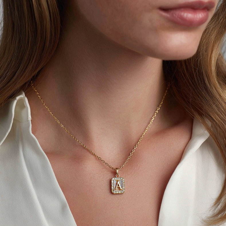 Make a personal statement with this elegant initial necklace from Charlotte & Lexi. Featuring a sophisticated rectangular medallion design, the pendant is adorned with sparkling cubic zirconia stones and a centered initial (‘A’ or ‘J’). Crafted from sterling silver and plated in luxurious yellow gold, this necklace combines durability with a timeless aesthetic. The 16-inch chain with a 2-inch extender ensures an adjustable fit, while the clear cubic zirconia stones reflect light beautifully, adding a touch of sparkle to any outfit. Perfect for layering or wearing alone, this necklace is a meaningful gift or a stylish addition to your jewelry collection.