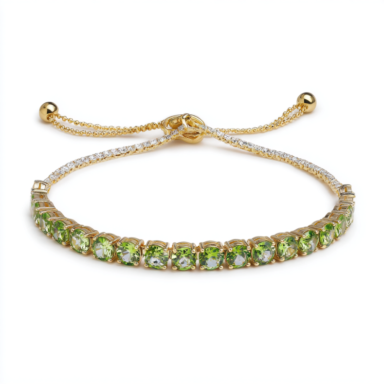 Add a touch of elegance to your jewelry collection with this stunning adjustable tennis bracelet from Charlotte & Lexi. Featuring a delicate line of sparkling green cubic zirconia stones, this bracelet is crafted from sterling silver and plated in luxurious yellow gold for lasting beauty. The adjustable sliding clasp allows for a perfect fit, accommodating wrist sizes from 4.5 to 9 inches. Designed for both everyday wear and special occasions, this timeless piece transitions effortlessly between casual and formal outfits, making it a versatile and stylish accessory.