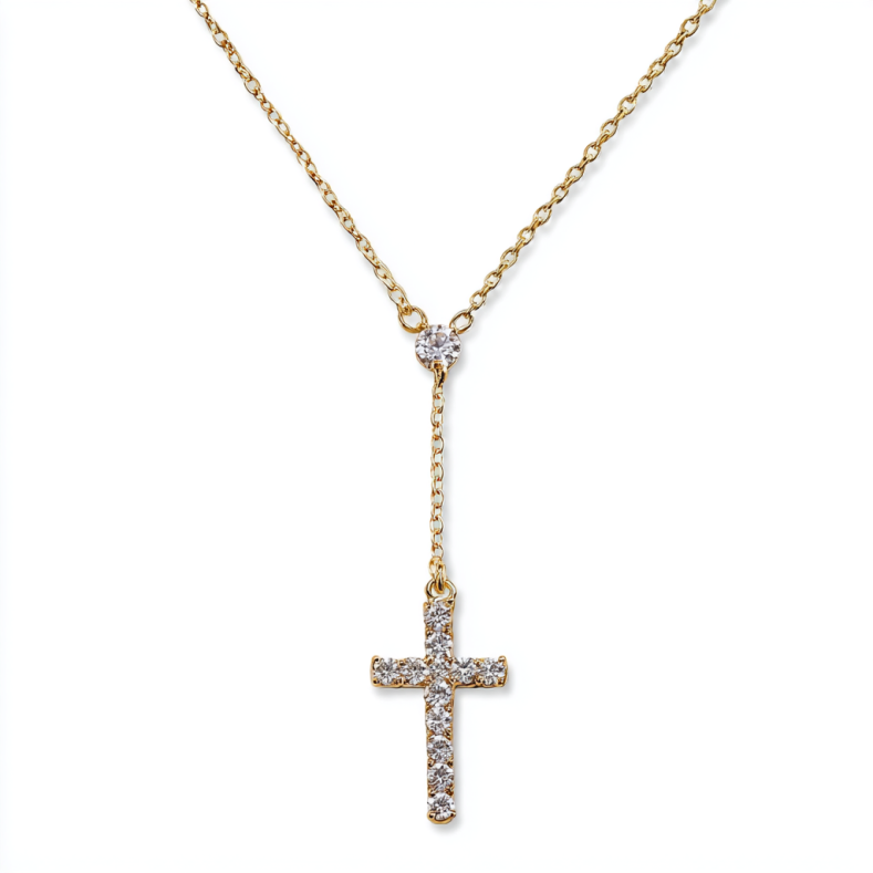 Elevate your style with this elegant Y-style necklace from Charlotte & Lexi. This necklace features a delicate cubic zirconia cross pendant suspended from a dainty 18-inch cable chain with a 2-inch extender. Crafted from sterling silver with yellow gold plating, the necklace offers a luxurious finish and durability. The sparkling cubic zirconia stones on the cross catch and reflect light beautifully, adding a subtle yet sophisticated shine. Perfect for layering or wearing alone, this timeless piece makes a versatile accessory for both casual and formal occasions.